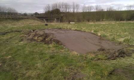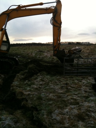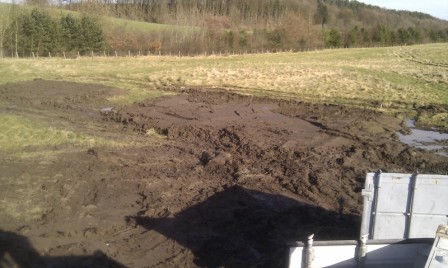 A lot of rain during the week meant the tractor went in deep when moving slabs.