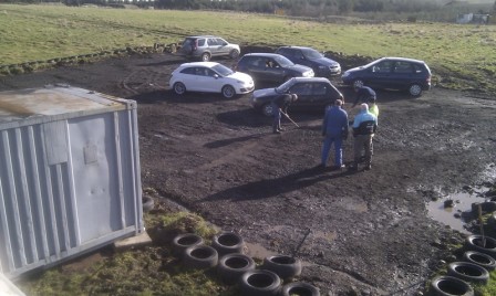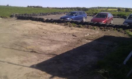 Carpark rolled now, drainage in and perimeter tyres